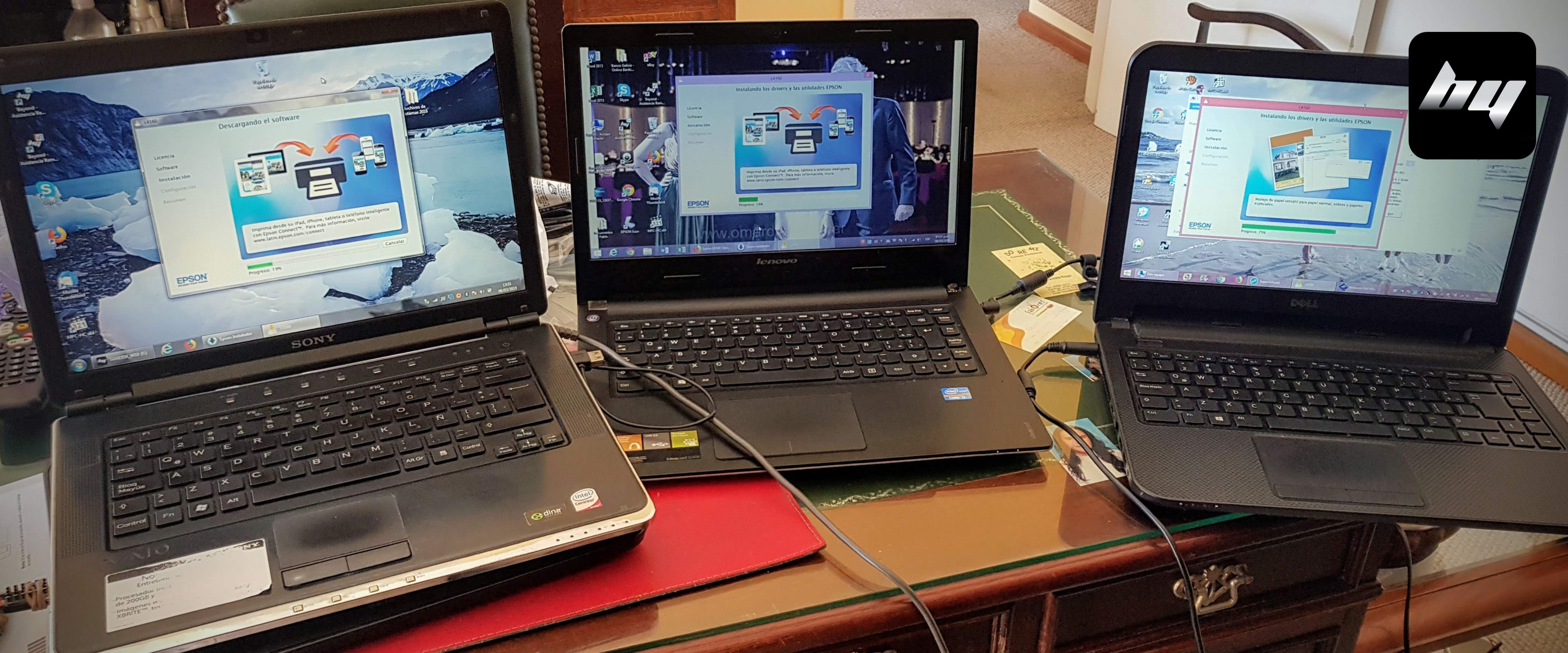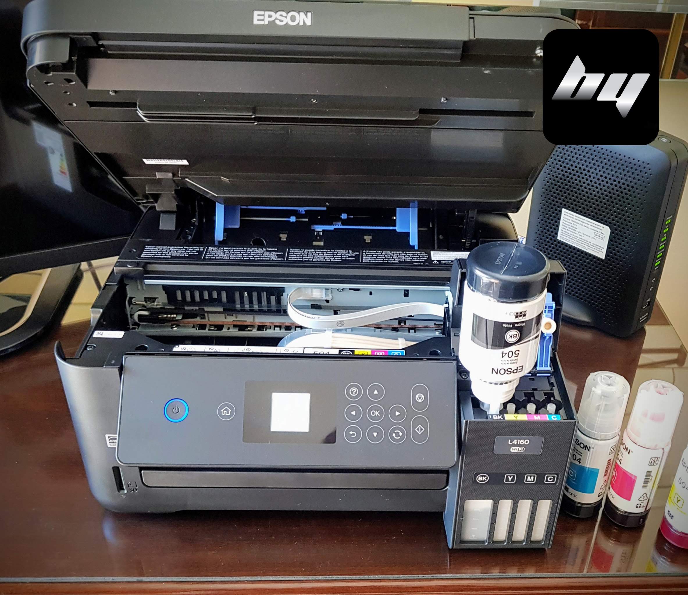 Este cliente necesitaba una impresora color rápida y de bajo costo de impresión. Para eso hicimos un servicio a domicilio e instalamos una Epson multifuncional color L4160 con tintas sueltas independientes. Realizamos la carga inicial de tintas y la instalamos en todas las Notebooks del cliente a través de la red WiFi. Verificamos el funcionamiento en cada una y la calidad de impresión.