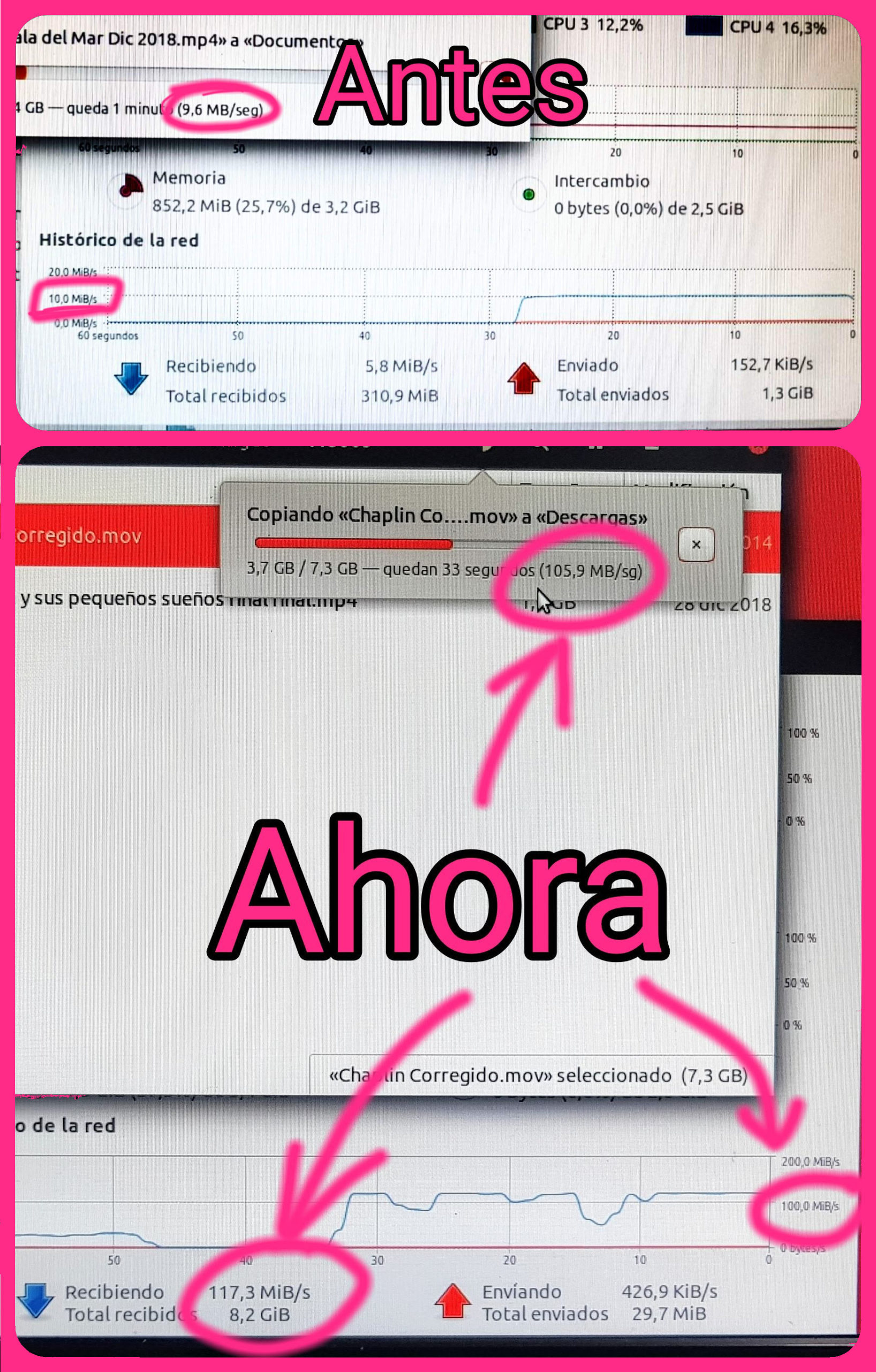 Esta vez hicimos una actualización y mejora a una red que instalamos nosotros, reemplazando los equipos Wi-Fi y red local cableada a 1000Mbps. Preparamos los equipos (fotos 1 a 3) y los instalamos según la necesidad del cliente (fotos 4 a 9). Luego los configuramos (foto 10) y realizamos las verificaciones de calidad de enlace (foto 11), velocidad de Internet WiFi (foto 12) y velocidad de red local cableada (foto13) logrando mejoras del 710% al 110%.