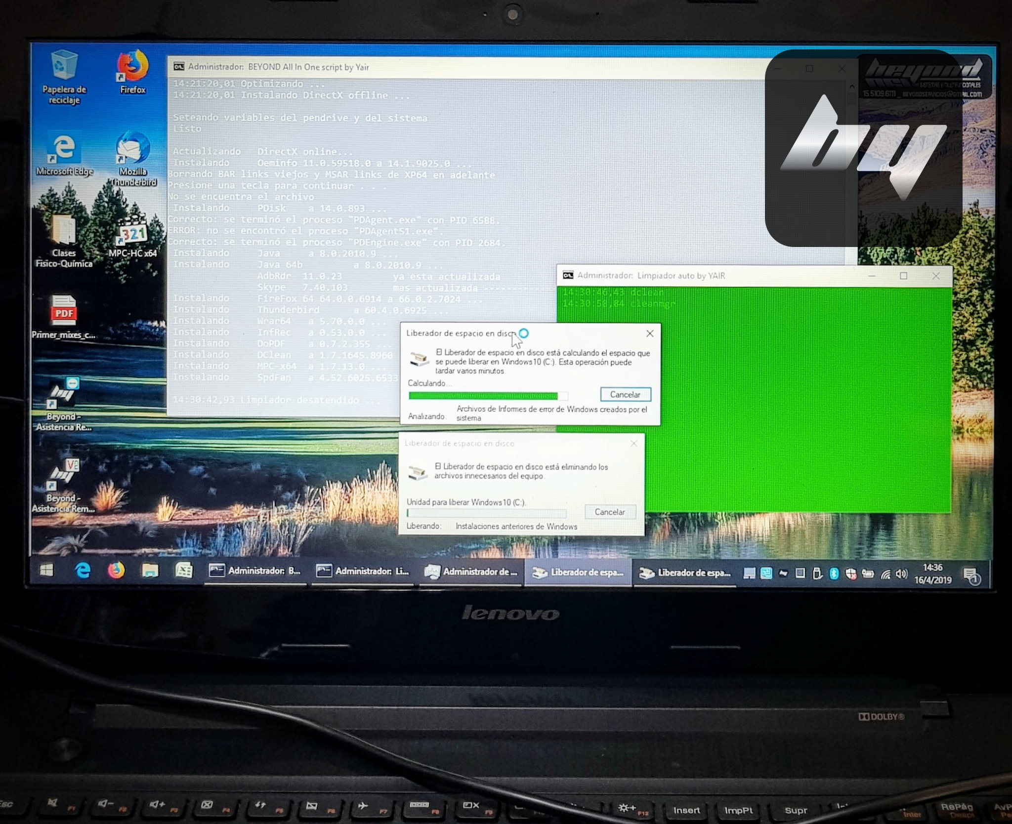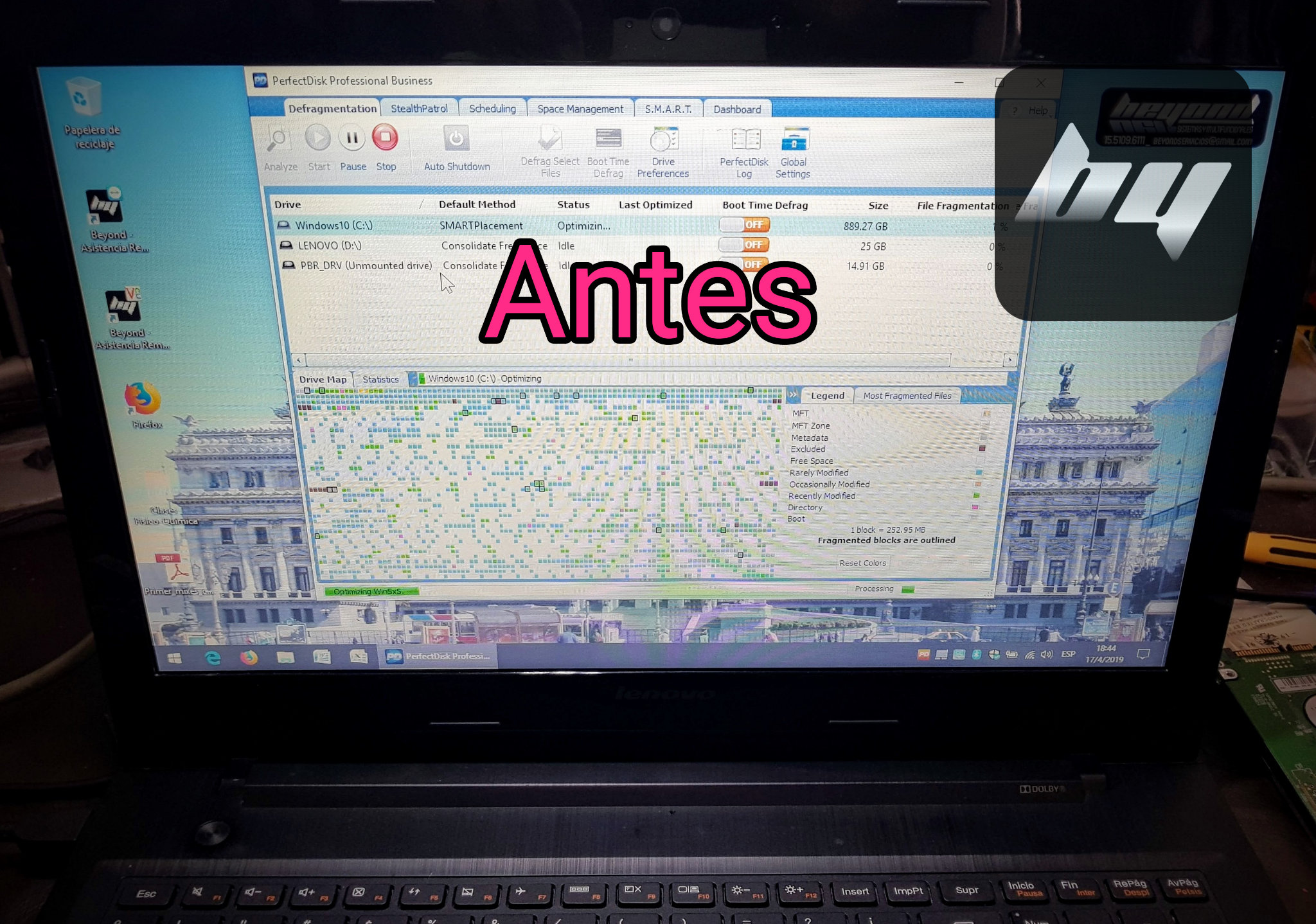 Esta notebook Lenovo no cargaba el sistema operativo (foto 1). Para solucionarlo hicimos un análisis del disco y encontramos daños (foto 2), reemplazamos el disco rígido (foto 3) y realizamos un instalación completa del sistema operativo Windows, programas y antivirus, actualizado al día de la entrega (foto 4). luego realizaremos una limpieza y optimización del sistema operativo y sistema de archivos (fotos 5 6 7 y 8). Por último copiamos los archivos de usuario al sistema nuevo e hicimos un backup de todo el trabajo (foto 9).